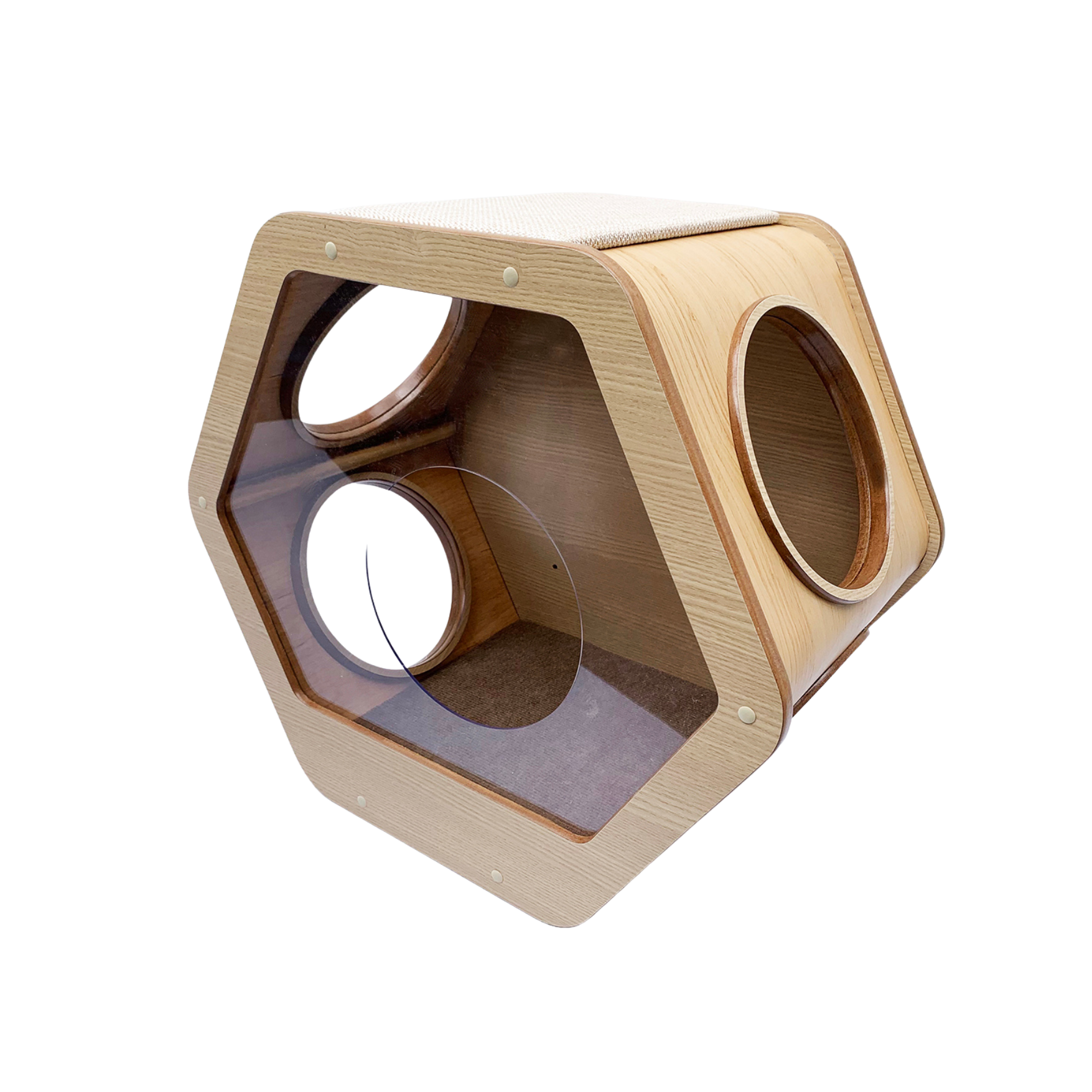 A prateleira Bee é oferecida em quatro padrões de madeira, preto, branco, trancoso e malva.